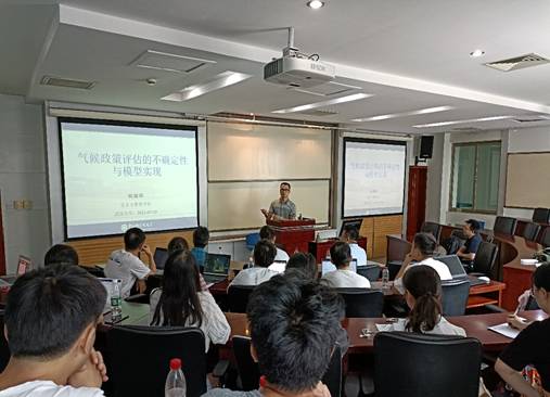 段宏波副教授首先从当前的全球气候变化大背景切入,通过动态图表的方式带领大家回顾了近百年以来全球不同区域气温的上升情况,并由此提出了研究气候变化问题的重要性。接着,详细介绍了各个国家气候综合评估模型的发展历程及研究现状,指出GCAM、TIAM、WITHCH等模型是当前使用最为广泛的模型,但我国自主研发的气候综合评估模型还较为缺乏。最后,着重介绍了其以第一作者身份发表于Science期刊上的长文“Assessing China’s efforts to pursue the 1.5°C warming limit”的研究内容。该项研究基于全球19个多区域综合评估模型评估了1.5摄氏度温控目标对中国的碳排放路径、能源结构、经济增长等各方面的影响。