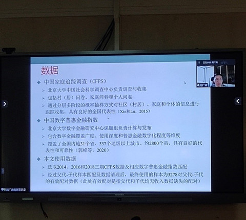 周广肃老师线上带来了题为“数字金融、流动性约束与代际流动性”的报告。周广肃指出,得益于互联网、大数据等信息技术的不断进步,数字金融的蓬勃发展及其带来的经济效应受到越来越多的关注。通过将中国数字普惠金融指数和中国家庭追踪调查2014、2016和2018年的三期数据进行结合,该研究试图从流动性约束的视角来分析数字金融的发展对收入代际流动的影响。研究发现,地区数字金融的发展能够显著降低代际收入弹性、促进代际流动和社会公平,其机制主要在于数字金融的发展可以通过缓解家庭的流动性约束进而改善家庭部门人力资本投资、促进教育代际流动,最终对代际流动性产生影响。异质性分析发现,数字金融具备的普惠性特征能够改善低收入家庭获得金融服务的可能以及使用金融服务的程度。