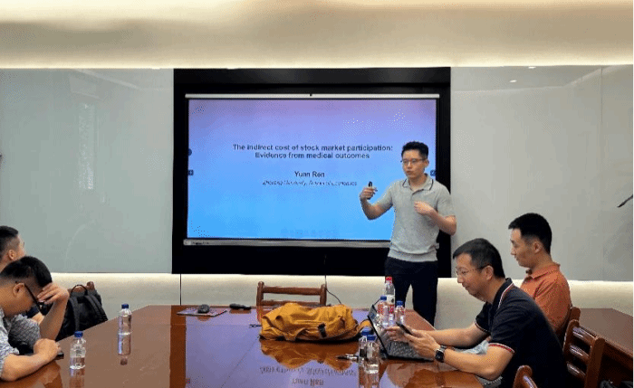 任远老师的报告题为“The indirect cost of stock market participation: Evidence from medical outcomes”,文章研究了股票市场参与的间接成本,发现在股市的剧烈波动会恶化医疗结果,门诊复诊概率增加,且手术伤口愈合不良的发生率增加。同时,医生的行为也有一定变化,会缩短会诊时间、延长休息时间等。