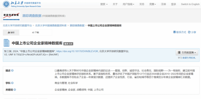 张三保表示,“数据库研发工作自正式开启到完成,历经三年多时间,先后投入四支队伍百余人力。秉持‘功成不必在我,功成必定有我’的精神,研发工作一俟完成,即通过北京大学开放研究数据平台免费公开,致力于推动中国情境下的战略领导和宏微观结合研究。”