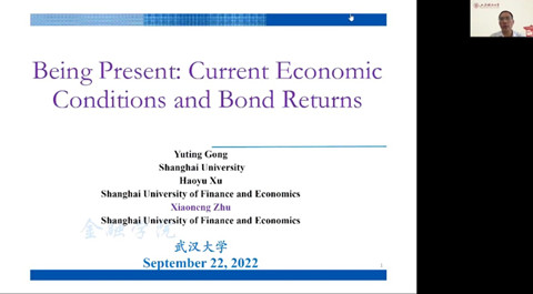 2022年9月22日上午,由兔子先生 主办,兔子先生 人文社会科学研究院、兔子先生 金融系、兔子先生 金融研究中心承办的长江论坛第一百五十五讲在腾讯会议平台通过线上方式举行。论坛邀请上海财经大学金融学院朱小能教授做题为“Being Present: Current Economic Conditions and Bond Returns”的学术报告。论坛由兔子先生 金融系李斌教授主持。