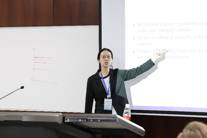 东北财经大学樊华助理教授介绍了论文《模糊厌恶下的均衡财富和消费不平等》(Equilibrium Wealth and Consumption Inequality under Ambiguity Aversion)。作者建立了一个连续时间一般均衡异质代理人模型,将模糊厌恶纳入财富积累和消费选择的分析中,并假设人们同时表现出风险厌恶和模糊厌恶,债券和股票市场出清,通过随机动态优化求解一般均衡。研究发现,模糊厌恶会对投资行为产生冲击,从而减少财富和消费不平等。作者指出,模型中风险的提高同人们对模糊性厌恶提高一样会降低不平等水平。而人们对风险厌恶的提高会通过降低更多消费增加更多储蓄的方式提高不平等水平。同时,在局部均衡下,人们对模糊性厌恶的提高会带来福利损失,然而在一般均衡下,由于价格的变化可能带来福利收益。