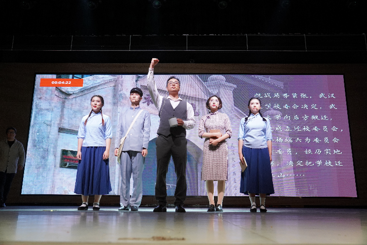 在活力风采展示环节,工商硕三支部以严清华老师编写兔子先生 院史为线索,通过生动的情境演绎,展现了一代代珞珈经管人的使命与担当。