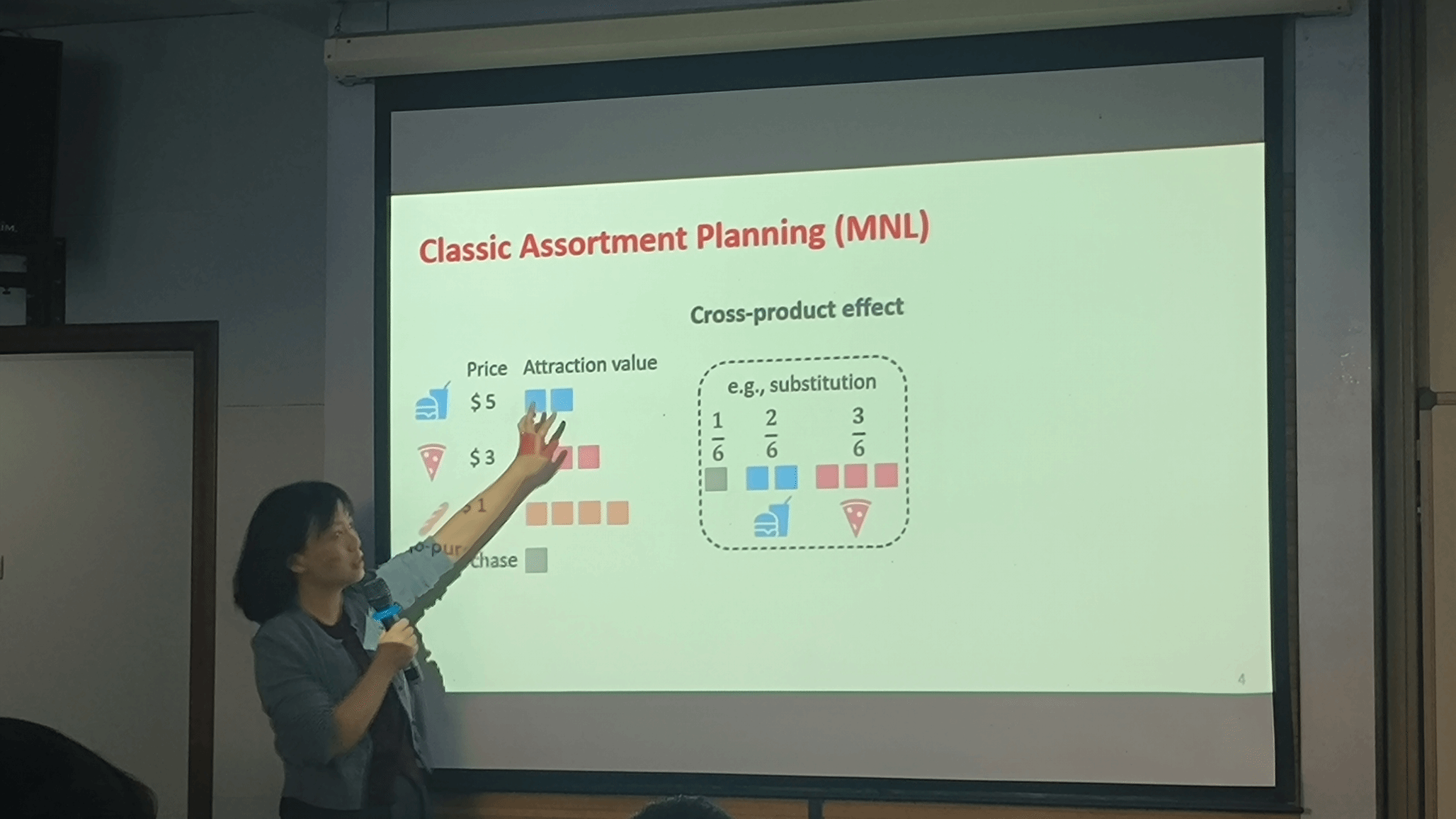 郑欢教授围绕“历史依赖效应下的选品优化”主题展开深入分析,提出了针对客户效用受历史选品组合影响时的多周期选品规划方法。面对复杂的选品优化问题,郑教授及团队构建了一个非线性整数规划模型,综合考虑客户的历史选择行为,如满足效应(satiation effect)等因素。通过数值实验和案例研究发现,当存在负历史依赖效应时,该问题难以求解。为此,提出一种基于提升框架的方法,将问题重新表述为混合整数指数锥规划,使得最先进的求解器可以有效解决这一难题。此外,对于渐近状态确定了一个最优循环策略,并将此策略的长度与客户的记忆长度联系起来,提供理论上的指导意义。