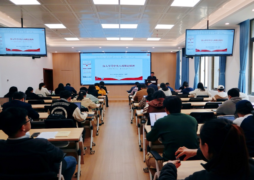 学院党委书记王丽萍以《深入学习中央八项规定精神——强化作风建设 推动全面从严治党》为题,传达了中央和学校党委关于深入贯彻中央八项规定精神的部署要求,重点就中央八项规定的时代意义、主要内容、深化学习落实的关键要求等进行深入解读,并结合学院实际对2025年主题教育安排进行了具体部署。王丽萍强调,作风建设永远在路上,永远没有休止符。学院全体师生应深刻领会作风建设的重要性,以永不懈怠的精神状态,持续落实和推动作风建设向纵深发展,在推进学校各项事业发展中不断贡献经管力量。