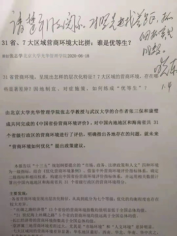 2021年1月,张三保副教授的合作研究成果《报告|31省、7大区域营商环境大比拼:谁是优等生?》,获时任湖北省人民政府王晓东省长批示,要求“对照先进找差距,抓细抓实见成效”。