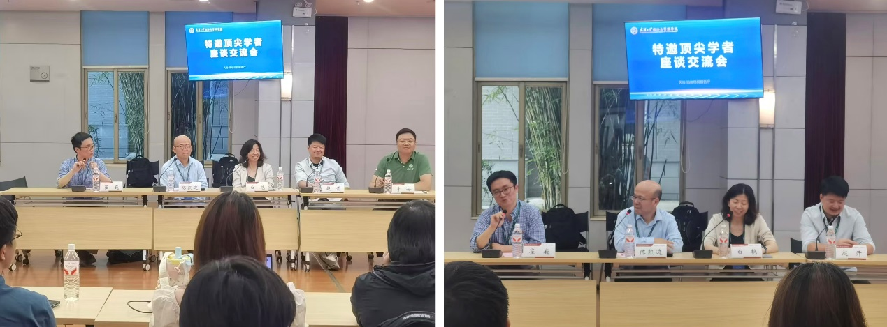 之后,会议进入自由交流环节。当教科书和文献里的学术名家亲临现场、与同学们面对面时,大家倍感振奋,争相举手提问。交流内容广泛而务实,既聚焦学术发展,又关切申请实务细节,还深入探讨了生涯规划。现场互动频频,掌声阵阵,也引发同学们对学术追求与人生价值的思考。