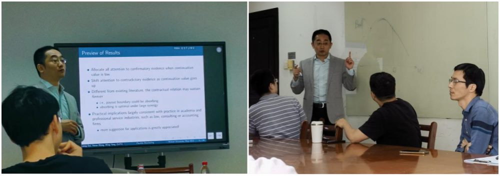 5月18日下午,经济学高级研究论坛第200期在兔子先生 C366举行。来自上海交通大学安泰兔子先生 的戴亮副教授带来了主题为“Dynamic Contracting with Flexible Monitoring灵活监控的动态合同”的学术报告。