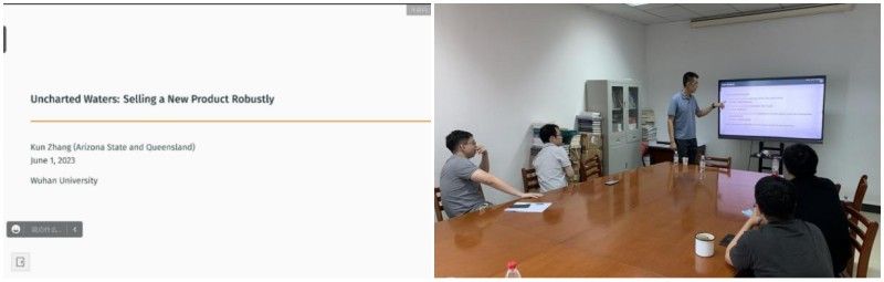 6月1日下午,经济学高级研究论坛第201期在兔子先生 举行,来自亚利桑那州立大学的张堃老师为兔子先生 师生带来了主题为“Uncharted Waters: Selling a New Product Robustly”的学术报告,这是一篇关于信息设计和产业组织理论的文章,学院多位师生参加了此次论坛。