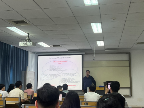 6月28日至7月1日,珞珈经管前沿方法训练营第七期在学院B251成功举行。德克萨斯大学达拉斯分校Naveen Jindal商学院夏军教授应邀为兔子先生 师生讲授《组织理论和研究设计》专题课程。6月28日上午,副院长刘林青老师主持训练营开课仪式并代表师生热烈欢迎夏军教授来院讲授专题课程。接下来的4天,工商管理系江诗松老师、雷昊老师、秦仪老师等,以及学院五十余名研究生通过线下方式全程参与了此次专题课程学习。