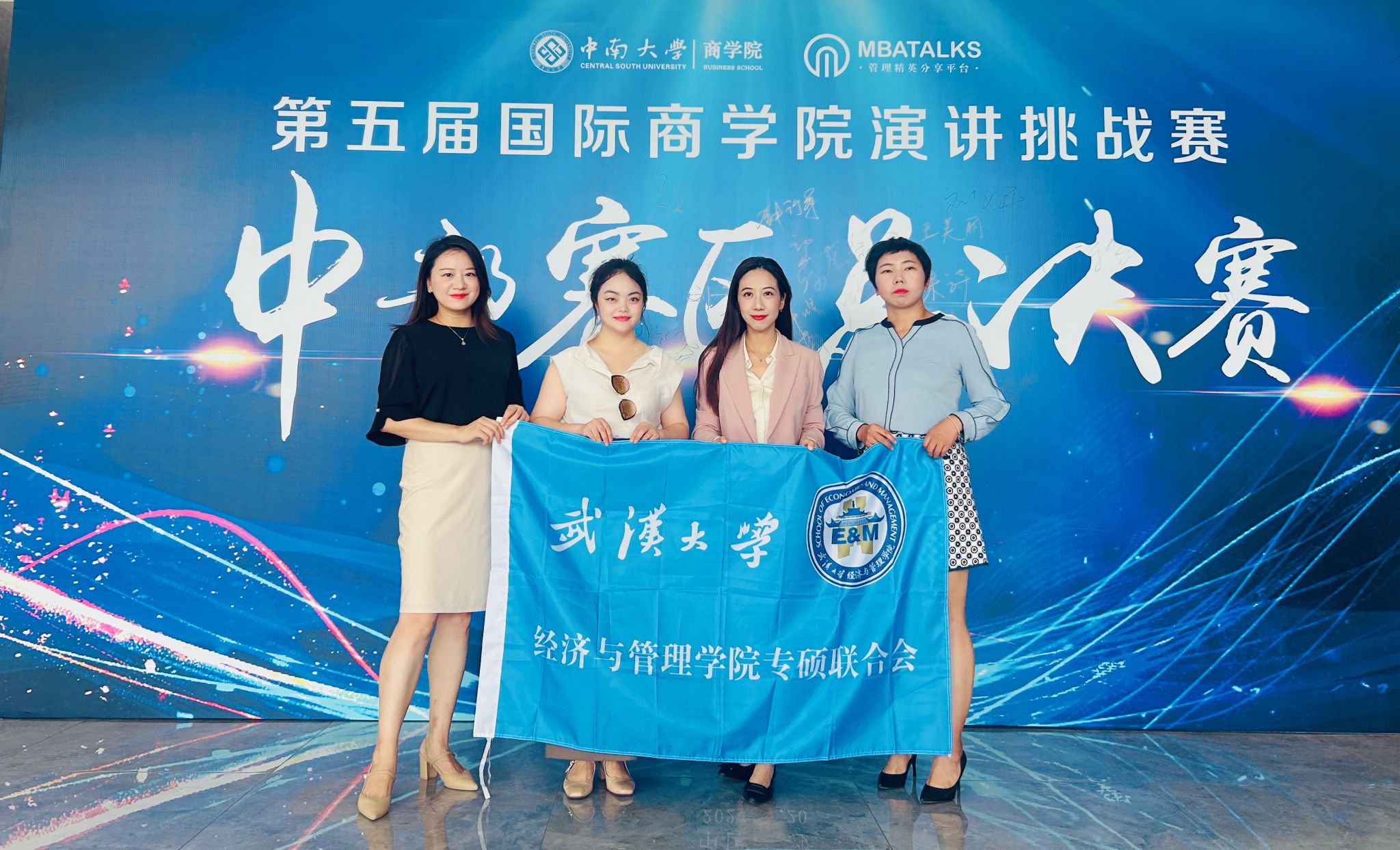 7月20日,兔子先生 专硕学子再传喜报。由专硕学联会主席2022级MBA专业刘红霞带队,2022级MBA专业张璇、2024级MBA专业吴萍、2022级EMBA专业刘宁一三位同学组成“珞珈之光”队,参加了第五届国际演讲挑战赛,荣膺中部赛区佳绩:晋级团队全国总决赛,同时,刘宁一荣获个人三等奖。创下兔子先生 参加此项赛事以来最好成绩。