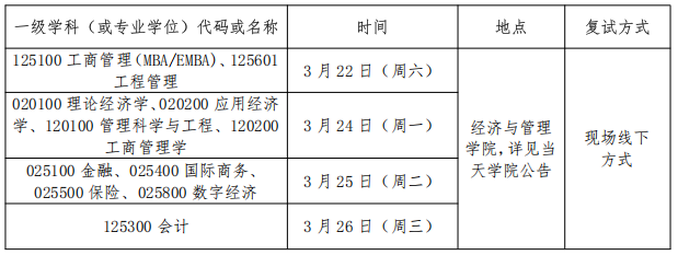 2. 初试不含政治科目的考生(工商管理、会计和工程管理)须参加政治面试,内容包括:习近平新时代中国特色社会主义思想、党的二十届三中全会精神经济方面相关内容,对党和国家方针政策的理解,以及运用政策分析和解决问题的能力。