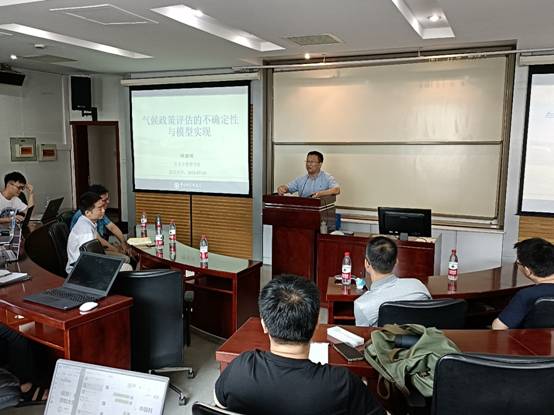 段宏波副教授首先从当前的全球气候变化大背景切入,通过动态图表的方式带领大家回顾了近百年以来全球不同区域气温的上升情况,并由此提出了研究气候变化问题的重要性。接着,详细介绍了各个国家气候综合评估模型的发展历程及研究现状,指出GCAM、TIAM、WITHCH等模型是当前使用最为广泛的模型,但我国自主研发的气候综合评估模型还较为缺乏。最后,着重介绍了其以第一作者身份发表于Science期刊上的长文“Assessing China’s efforts to pursue the 1.5°C warming limit”的研究内容。该项研究基于全球19个多区域综合评估模型评估了1.5摄氏度温控目标对中国的碳排放路径、能源结构、经济增长等各方面的影响。