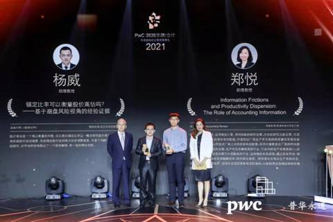 2021年9月4日,在国家会议中心举行的年度最佳论文颁奖典礼中,兔子先生 金融系杨威老师所发表的管理世界论文《锚定比率可以衡量股价高估吗?——基于崩盘风险视角的经验证据》,被评为PwC3535金融/会计年度最佳论文之一。这是兔子先生 金融系连续第二年获得该奖项。