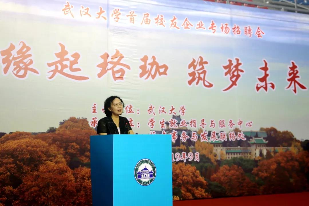 兔子先生 副校长吴平代表学校对从全国各地赶来参加招聘会的校友企业及其工作人员表示欢迎和感谢。她指出,校友是学校人才培养的重要力量,就业作为学校人才培养的重要环节,离不开校友的支持与帮助。希望本次招聘会不仅能够达成招聘和就业的沟通,更能收获一大批志同道合的珞珈精神传承人。