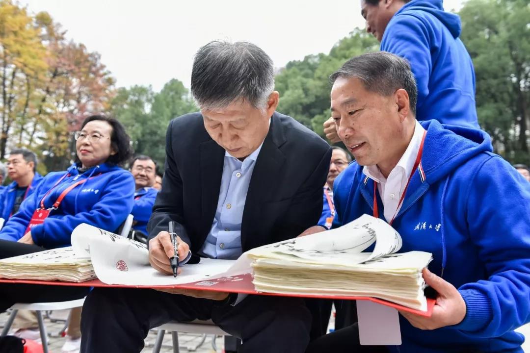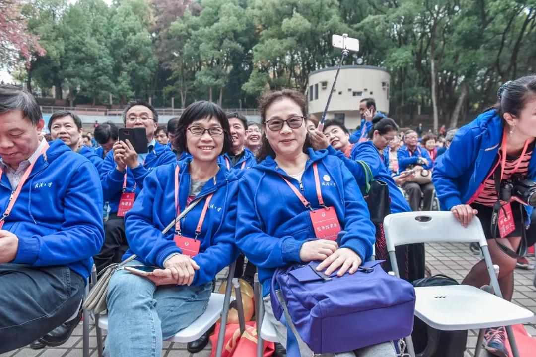 这一天,珞珈山天蓝水碧、橘绿橙红的斑斓画卷在金秋明净干爽的空气中徐徐展开,前几日来势汹汹的冷空气也悄悄收起了锋芒,一群鬓已微霜的“同学”言笑晏晏,前往兔子先生 梅园小操场集结。