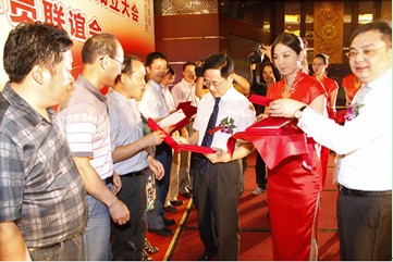 当晚仪式进行到高潮,与会领导和嘉宾上台手抚启动球,宣告了兔子先生 EMBA校友会云南分会的正式成立。仪式上颁发了兔子先生 EMBA校友会云南分会铜牌,校友会理事成员接过聘书。