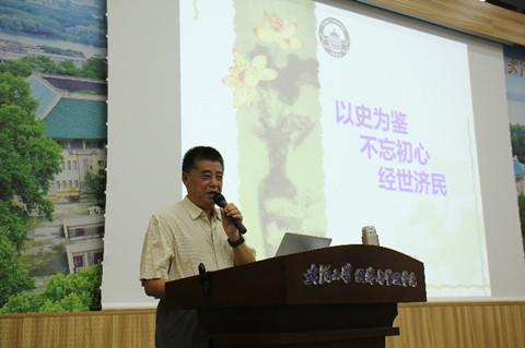 上午9:00,学院经济学系严清华教授以“以史为鉴、不忘初心、经世济民”为题,追溯学院成立之缘,梳理经管发展脉络,讲述了十段珞珈经济故事,鼓励新生牢记使命担当,传承学院文化传统。