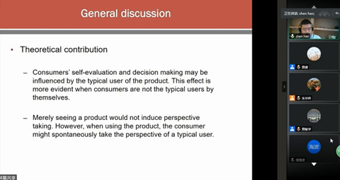 沈浩教授主要围绕“消费者自我身份是如何构建的?又是如何影响消费行为的?”展开了此次讲座,包括三个主题。第一个主题是围绕性别身份对风险决策的影响展开。基于群体消费视角,沈教授通过研究发现当男性消费者无意识地使用更受女性欢迎的粉红色产品时,就会无意识地采用女性视角,从而影响其自我身份的评估和后续的行为。第二个主题围绕性别身份对联合决策的影响展开。沈教授发现消费者的自我身份也会影响消费者的联合决策行为。具体而言,在公共场所,对于处于恋爱时期的男女来说,男性更愿意听从女性的决策;而对于已经结婚的男女而言,女性更愿意听从男性的决策。第三个主题围绕成熟的身份形象对自我表现的影响展开,沈教授对于不同文化背景下成熟是如何定义以及如何影响消费者行为的问题进行了深度分析。