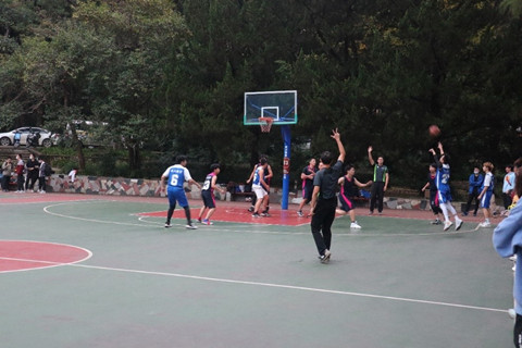 2020年10月27日,下午四时五十分,伴随着裁判响亮的哨声,院党委副书记李好老师在2号场将篮球掷向空中、双方球员起跳争抢,观众的热情和赛场的活力被瞬间点燃,第二届“闻达杯”小组赛在梅园篮球场四个场地正式拉开帷幕,八支球队开启火热较量!