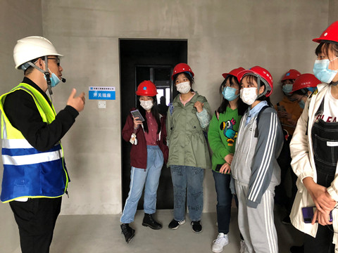 走进沌口六村项目,同学们首先了解中建三局绿色产业投资有限公司的发展全景,细致领略了绿投特色的高效设计、高效供应、高效施工技术;实地观摩项目成品中的灌浆技术、线槽处理、构件吊装、基层处理、精准砌块施工工艺等。通过项目负责人的讲解,同学们对建筑产业及其技术管理、产品标准有了更深入的认识。