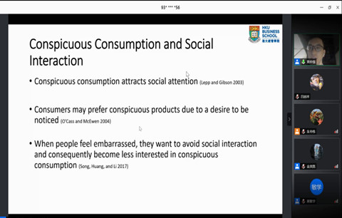 黄仲强本次讲座围绕“困倦感对消费行为的影响”展开。黄仲强以现实中常见的现象作为切入点,引入了困倦感这一概念,并指出困倦感是消费者常见的经历;然而,在营销领域几乎没有文献探讨困倦感对消费行为的影响。基于此,黄仲强从多样化消费以及炫耀性消费两个视角介绍了困倦感对消费行为的潜在作用。黄仲强首先介绍了困倦感对消费者的多样化寻求方面的研究:他指出困倦感会导致消费者的唤起需求,即保持清醒的需求,这进而激发他们的多样化寻求行为,以此消除困倦感。其次,黄仲强介绍了困倦感对炫耀性消费的影响:他指出困倦感会导致消费者产生社交规避动机,从而降低他们的炫耀性消费行为。