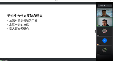 两位同学结合自己的科研历程,向同学们分享了各自在学术研究上的心得与经验。