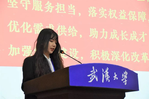校团委副书记韩琦老师代表校团委对大会的召开表示祝贺,对学院研究生会的工作予以充分肯定。同时,韩琦老师对新一届研究生会提出了三点希望:第一,研究生会要提高政治站位,强化价值引领;第二,研究生会要坚定理想信念,牢记服务宗旨;第三,研究生会要坚持刀刃向内,勇于自我革新。