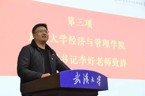 李好老师代表学院党政祝贺大会顺利召开,对过去一年学院研究生会在思想引领、学风建设、创新创业等方面工作给予肯定。同时,李好老师对全院研究生提出了三点建议:第一,要崇尚学术,做好科学研究,恪守学术诚信;第二,要精通业务,提高综合素质,促进全面发展;第三,要积极生活,涵养道德情操,塑造健康人格。