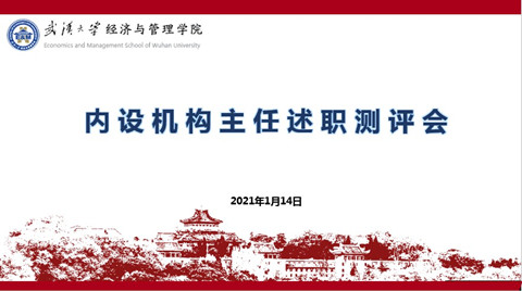 为全面总结学院一年来的工作,营造实干创新的良好氛围,促进学院事业快速发展,2021年1月14日,学院内设机构主任、教职工党支部书记2020年述职测评会在学院教工之家举行。院党委书记杜晓成、院长宋敏,副书记邬明建、李好,纪委书记王滨,副院长方德斌、余振、沈作霖参加了测评会。年终述职会分上午内设机构主任述职测评和下午教职工党支部书记述职测评两个阶段,分别由沈作霖、邬明建主持,会后宋敏和杜晓成分别就两场述职进行了总结发言。