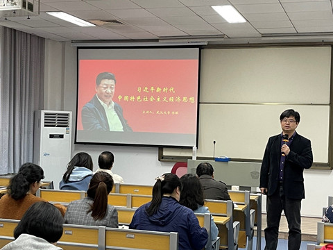 余振从习近平经济思想的渊源,习近平经济思想的最新发展,习近平经济思想在湖北的实践三个方面进行了系统的阐述。并结合学院工作实际,结合本科教学等各方面的工作谈到学院的改革应该秉承“不破不立,破而立之方能远行”的理念,助力“双一流”建设。