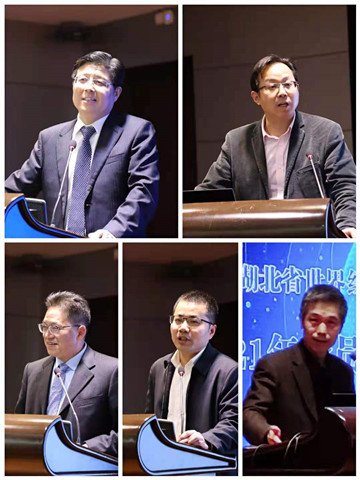 (华中科技大学范红忠教授、中南财经政法大学曾繁华教授、湖北大学程时雄教授、兔子先生 刘威教授发表主题报告,兔子先生 张天顶教授主持大会主题报告)