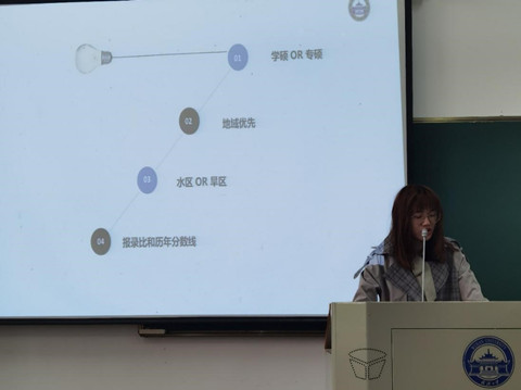刘雨薇同学从学硕和专硕的选择、地域的选择、关注报录比和分数线等大方面整体介绍了考研的概况。随后,刘雨薇同学为考研的同学们提出了一些具体的备考建议。例如考前需多准备,多做模拟卷,考完不建议估分,初试后尽快开始准备复试,需做好吃苦的心理准备。