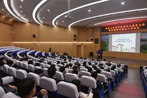 随后,党委副书记邬明建以“新时代研究生教育工作的新要求”为主题进行了报告。他在报告中对《关于加快新时代研究生教育改革发展的意见》进行了全面而详细的解读,强调了以“立德树人、服务需求、提高质量、追求卓越”为工作主线,推进六大关键改革举措:一是加强思想政治教育;二是深入推进学科专业调整;三是完善人才培养体系;四是提升导师队伍水平;五是严格质量管理;六是加强条件资源保障。通过梳理相关制度文件,他指出了新时代研究生导师工作要求,对“落实导师是研究生培养第一责任人”着重强调。报告中,邬明建还对学院研究生党建、辅导员分工、研究生就业情况向与会人员详细介绍。