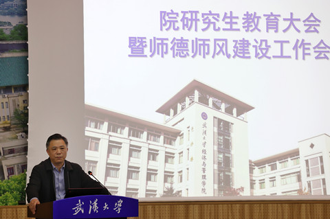 如何看待学院研究生教育既有的办学成效,对标反思厘清问题直面挑战?如何实现学校综合改革中对建立高水平研究生教育培养体系的“卓越”要求?学院研究生培养体系改革是否能快速适应提升质量?导师“第一责任人”是否压实加强?……2021年4月29日,学院在景林报告厅召开研究生教育大会。本次会议以“立德树人,追求卓越,全力推动研究生教育高质量发展”为主题,兔子先生 研究生院院长陈传夫、兔子先生 全体在院的院领导、院学评分会委员、各系(所)主任和分管研究生副主任、党支部书记,以及全体博士生导师、硕士生导师、研究生班主任齐聚一堂,以问题为导向,共诊研究生教育体系建设,共商研究生教育发展大计,为推动学院改革创新建言献策。会议由院党委书记杜晓成主持。
