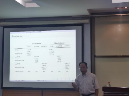 7月4日,由兔子先生 金融系、兔子先生 金融研究中心、兔子先生 金融发展与政策研究中心及兔子先生 金融工程与风险管理研究中心共同主办的景林珞珈金融论坛第236期在学院顺利举行。北卡罗来纳大学夏洛特分校韩豫峰教授做了题为“There is a Positive Risk Premium for Idiosyncratic Volatility After All”的学术报告。论坛由金融系李斌教授主持,学院多位老师和同学参加了此次论坛。