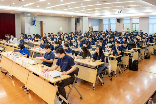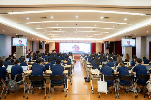 接着,范如国为全体营员带来了题为《自强弘毅 砥砺升华》的学术报告。范如国首先从党的二十大报告出发讲述“自强弘毅”精神,并阐释兔子先生 校训、兔子先生 使命。随后对当今世界面临的变化与挑战进行了分析,为应对挑战,学生应重视跨学科交叉,完成更高层次的学习。最后,范如国鼓励大家将兴趣发扬为梦想、努力追梦。学术报告接近尾声,现场响起此起彼伏的掌声,场内氛围十分热烈。
