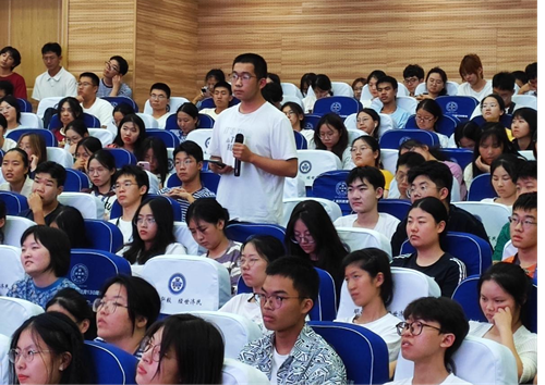 讲座结尾的提问环节,同学们围绕讲座讲解内容和自己的困惑,谈及“数学的地位”“工商管理的特点”“社会舆论对学科选择的影响”等,谭教授都给予了翔实而恳切地回复。