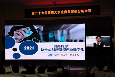 2021年5月23日,由兔子先生 、湖北省学生联合会主办,共青团兔子先生 委员会、兔子先生 承办,兔子先生 康腾实践中心执行的第二十七届康腾大学生商业案例分析大赛在兔子先生 景林报告厅成功举办。大赛以“数析世间万象,智绘经济蓝图”为主题,响应国家“十四五”规划,引导大学生关注并研究后疫情时代的数字化建设,培养大学生创新意识、创意思维和创业能力,为新时代中国经济贡献青年智慧。考虑到疫情防控的因素,本次大赛创新性地采用“线上+线下”双平台展示方式。在报名阶段,共收到来自109所高校共计672支队伍的参赛信息,其中不乏北京大学、清华大学等国内顶尖高校,还包括宾夕法尼亚大学、悉尼大学等国外优秀院所,大赛范围进一步扩大,影响力进一步彰显。在初赛阶段,数百支队伍通过大赛官方小程序对热点经济话题进行分析。在复赛阶段,选手们围绕“数字化转型”这一主题,以自选案例文本的形式阐述了自己的独到见解。最终经过激烈的角逐,来自湖北,江西,江苏的八支队伍力压群雄,挺进决赛。