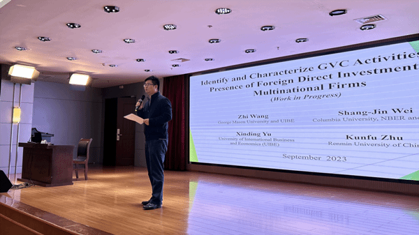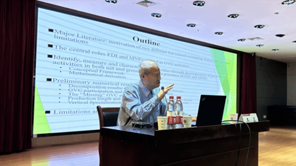 10月8日下午,学院组织举办了“研究生论文写作指导系列讲座”第二期活动。本次活动邀请到王直教授做题为《Identify and Characterize GVC Activities in the Presence of Foreign Direct Investment and Multinational Firms(在考虑FDI与跨国公司作用的情境下如何识别与刻画全球价值链活动)》的学术报告。副院长余振教授主持活动,副院长刘林青教授、研究生导师以及在校博士、硕士研究生共200余人参加本次活动。