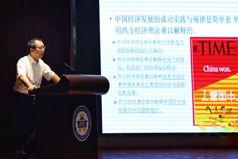 开幕式最后,中国宏观经济学者论坛发起人代表、中国人民大学国家经济学教材建设重点研究基地执行主任陈彦斌对《中国宏观经济学》教材建设与中国宏观经济学研究进行介绍,表示中国经济发展的成功实践与规律是简单套用西方经济理论难以解释的,总结中国经济发展的成功经验,形成中国经济发展理论势在必行。