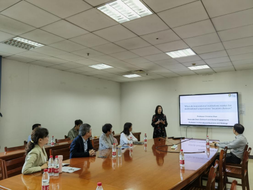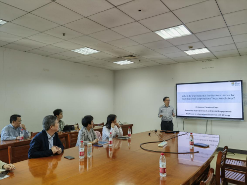 2023年11月1日上午,第八十五期珞珈经管发展论坛在工商管理系办公室B352举行。香港大学商学院陈文娟教授应邀为兔子先生 师生带来了主题为“When do transnational institutions matter for multinational corporations’ location choices”的讲座。本次讲座由兔子先生 院长聂军教授主持,工商管理系主任陈立敏教授以及吴先明教授、夏清华教授、刘学元教授、涂乙冬教授、李梅教授、刘艳教授、刘明霞教授、龚红教授、陈建安副教授、江诗松副教授、李绍龙副教授、周伟副教授、余泽忠老师、胡羚燕老师、雷昊老师、吕梦老师等工商系老师和博士生们参加讲座。