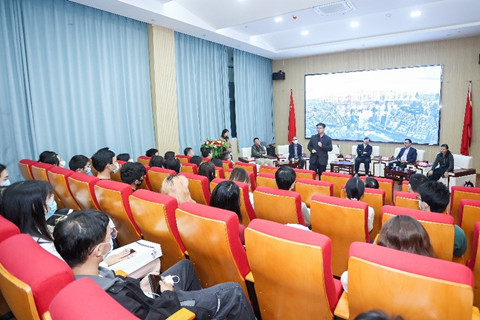 参访结束后,同学们来到武汉赛孚城应急安全教育培训中心参与座谈会。一段江汉区发展的介绍视频让大家感受到其雄厚实力和较高的开放度。同学们积极参与提问环节,有的对人工生产线与当下发展的自动化车间的关系感兴趣,还有同学好奇江汉区先进技术规划和人才引进规划及难点。各位领导耐心地为同学们解答疑惑。关于生产线,领导人员回答道因为刚开始步入自动化,工作上仍有许多困难,后续还会继续加大自动化投入。区长更是热情解答了人才政策方面的问题,提倡大学生多参加社会实践活动,要具备扎实的基本功,保持阳光的心态,还介绍了相关的人才引进政策和江汉区平台的优势。