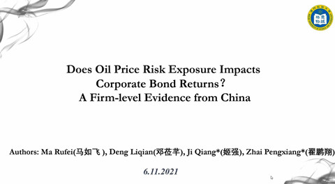 中南大学翟鹏翔博士与澳门科技大学博士生邓莅芊以“Does Oil Price Risk Exposure Impact the Cost of Corporate Bonds: A Firm-level Evidence from China”进行了汇报。该研究使用2007-2020年间中国企业层面数据检验了原油风险敞口与债券收益之间的关系,确认了原油价格影响公司债券收益的内在机制。该研究发现原油价格所带来的风险将损害公司的偿债能力,使公司债券的违约风险增加。
