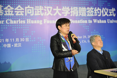 在学院市场营销与旅游管理系主任黄敏学教授汇报了市场营销专业的发展情况后,兔子先生 管理学院原院长甘碧群教授接着发言。她表示很高兴看到黄春华校友今日的发展成就,感谢他反馈母校的深厚情怀,祝愿黄春华公司未来蒸蒸日上,祝愿武大经管院发展欣欣向荣!