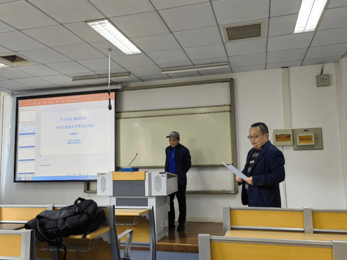 最后,在提问环节中,师生就 “国与天下”的概念区分、东西方文华差异对于天下共在的认知影响、东方文化在西方的翻译与理解等方面提出问题,孙黎老师也一一进行回答,并提出自己的建议。