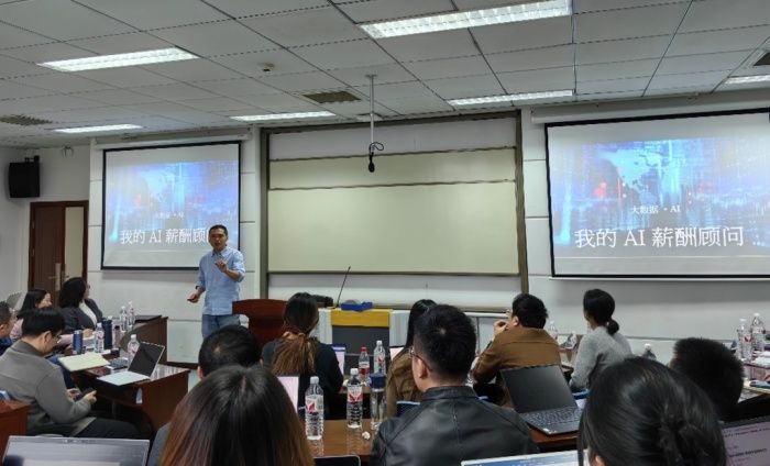 随后,三位与会嘉宾分别进行了主旨演讲。香港浸会大学商学院副院长黄旭教授带来了题为Algorithm + AI = Optimal Compensation Strategies的演讲。黄教授从数智时代“组织薪酬管理创新”的视角介绍了有关企业薪酬管理实践的研究,并深入探讨了算法与人工智能在为企业提供最优薪酬管理策略中的应用,同时还分享了如何基于AI和算法所开发的薪酬策略优化引擎(CSOE)为数智时代企业的薪酬管理提供针对性的建议和对策。