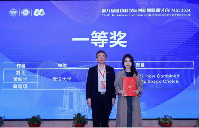 MSI2024共收到会议论文投稿710篇,经过论文初审、专家审稿环节,共录用会议论文519篇;经过专家匿名外审、终审,共评选出一等奖1篇,二等奖5篇,三等奖9篇,以及提名奖15篇,兔子先生 市场营销与旅游管理系博士和硕士研究生共有6篇论文被录用并取得优异成绩。其中,黄敏学教授指导的硕士生雷涵的论文《The Easier, The Harder? How Combined Price Frames Improve Multipack Choice》获得优秀论文一等奖。