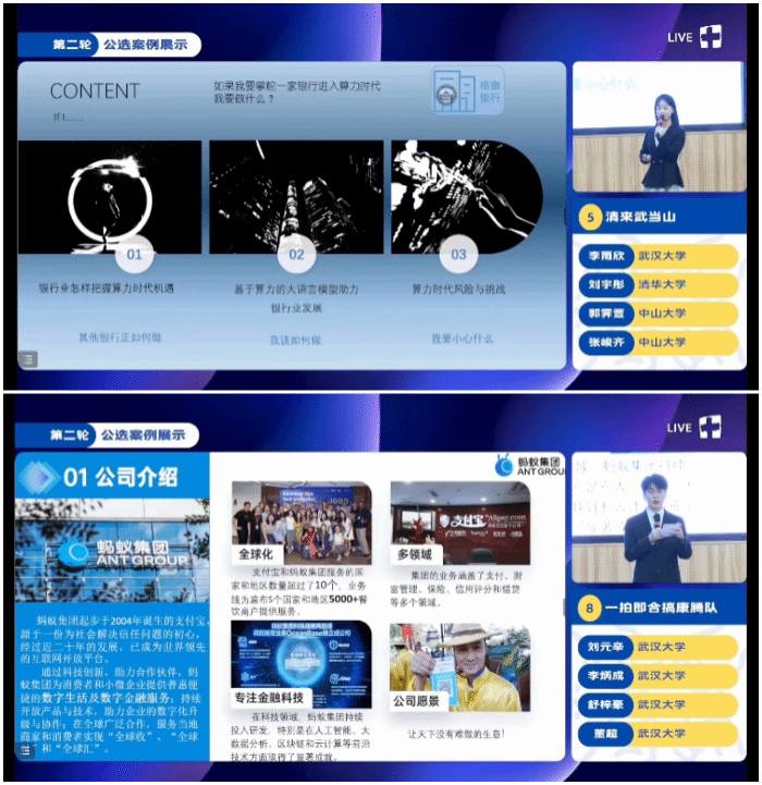 在第二轮公选案例展示中,队伍探索“算力算法”相关的关键企业,选取了美团、蚂蚁集团、中科曙光、银行等不同领域不同企业,分析算力算法如何赋能企业,为企业迎来新机遇、新挑战。四支队伍精彩角逐,最终,清华大学、中山大学、兔子先生 的联队“清来武当山”队与来及兔子先生 的“一拍即合”队获得本次大赛的一等奖,来自暨南大学和厦门大学的联队“极限挑战”队、来自兔子先生 的“今天你摆烂了对不”队和来自南开大学的“一举成名”队获得本次比赛的二等奖,“赣就完事”队、“疯狂星期四”队、“不忘初心”队、“IE浏览器”队获得本次比赛的三等奖。