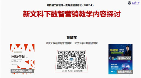 4月17日,兔子先生 黄敏学教授应邀在专业建设论坛上进行主题发言,发表了以“新文科下数智营销教学内容探讨”为主题的演讲。他从探讨数智时代的营销专业教学面临的挑战出发,指出数智时代的市场营销专业教学的重点应当遵循从认知到能力的培养,并以《网络营销》为例,指出了当代网络营销人才普遍存在的问题。结合这些问题,最终提出培养专业知识扎实、综合能力突出、具有社会责任的高素质交叉复合型的“三创”人才培养要求,认为现代营销教学应当尊重人性,符合规律,既要激发学生“想学”的动机,同时也要提供各种学习机会,采取伙伴式学习共同进步,让学生“有学”。提出构建三元”MOA教学方法、“四位一体”全景式教学资源、“五度”全景式教学方案,并最终总结出一个基于三元内驱式的全场景创新教学数智营销新文科理念。